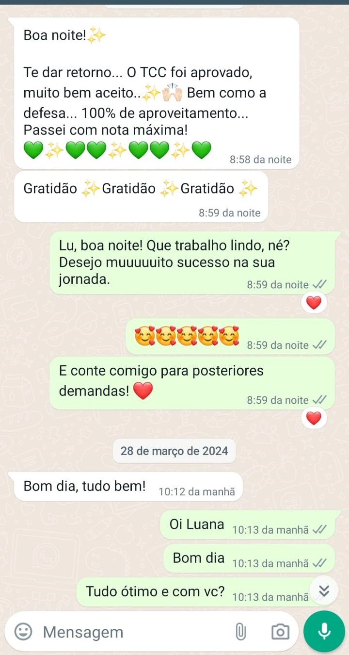 Meu objetivo é trazer a escrita de forma descomplicada para que alunos consigam ter auxílio na escrita dos seus projetos, TCCs ou artigos científicos seja através de uma mentoria ou para que eu seja a mediadora desse processo, pois é de suma importância saber o que fazer e quando fazer em cada etapa dos seus trabalhos.